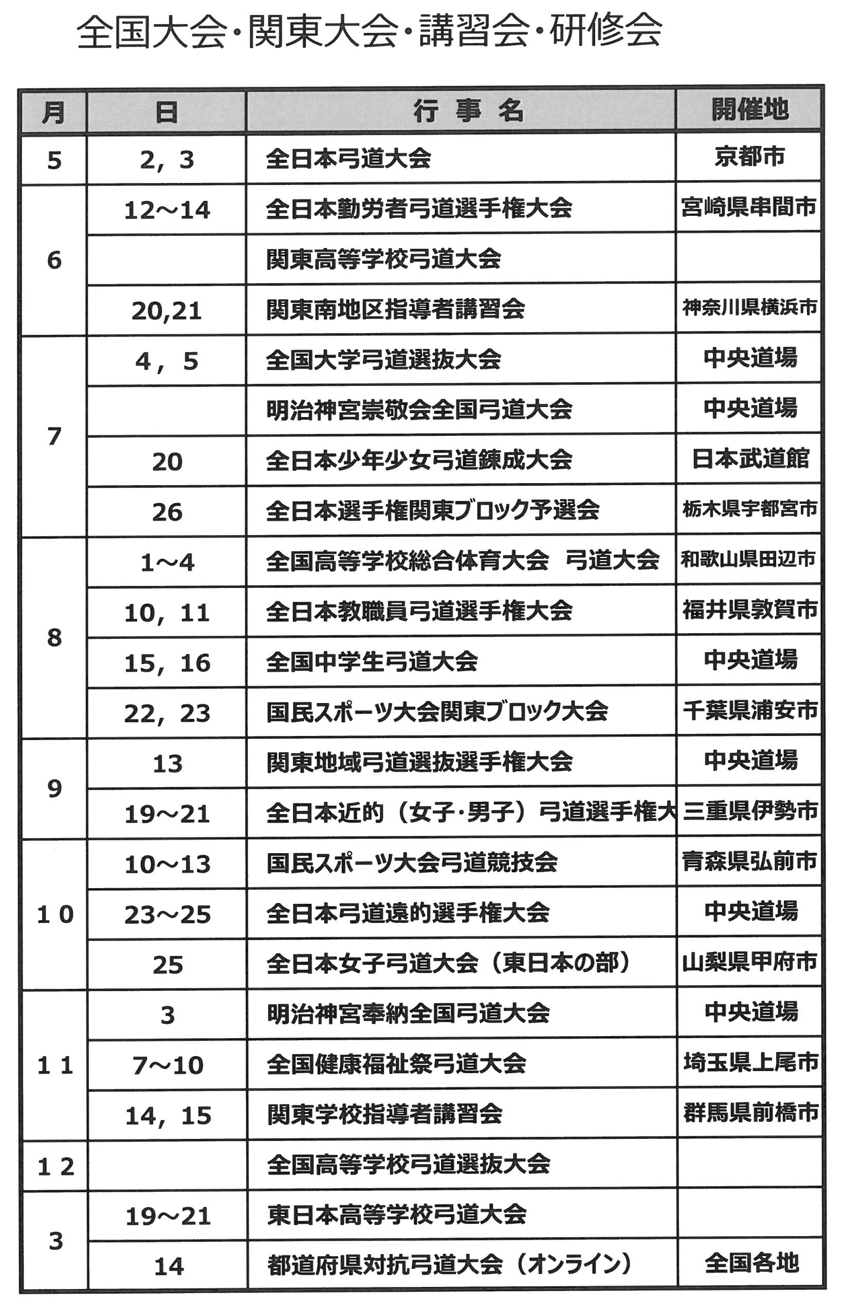 全国・関東大会、講習会